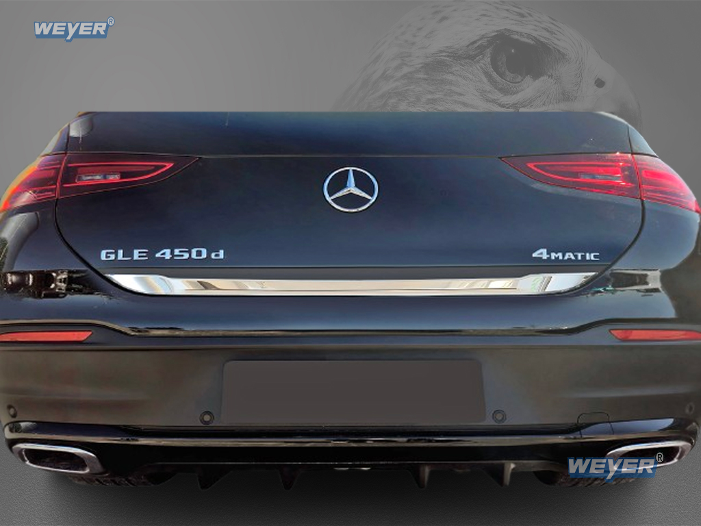 Edelstahl Designblende für Ihre Heckklappe. Verschafft Ihrem MERCEDES GLE COUPE ab Baujahr 2019- eine edle Optik. Hochwertige Weyer Edelstahlleiste - passgenau für Ihr Fahrzeug- durch vormontiertes 3M Klebeband schnell und einfach anzubringen!