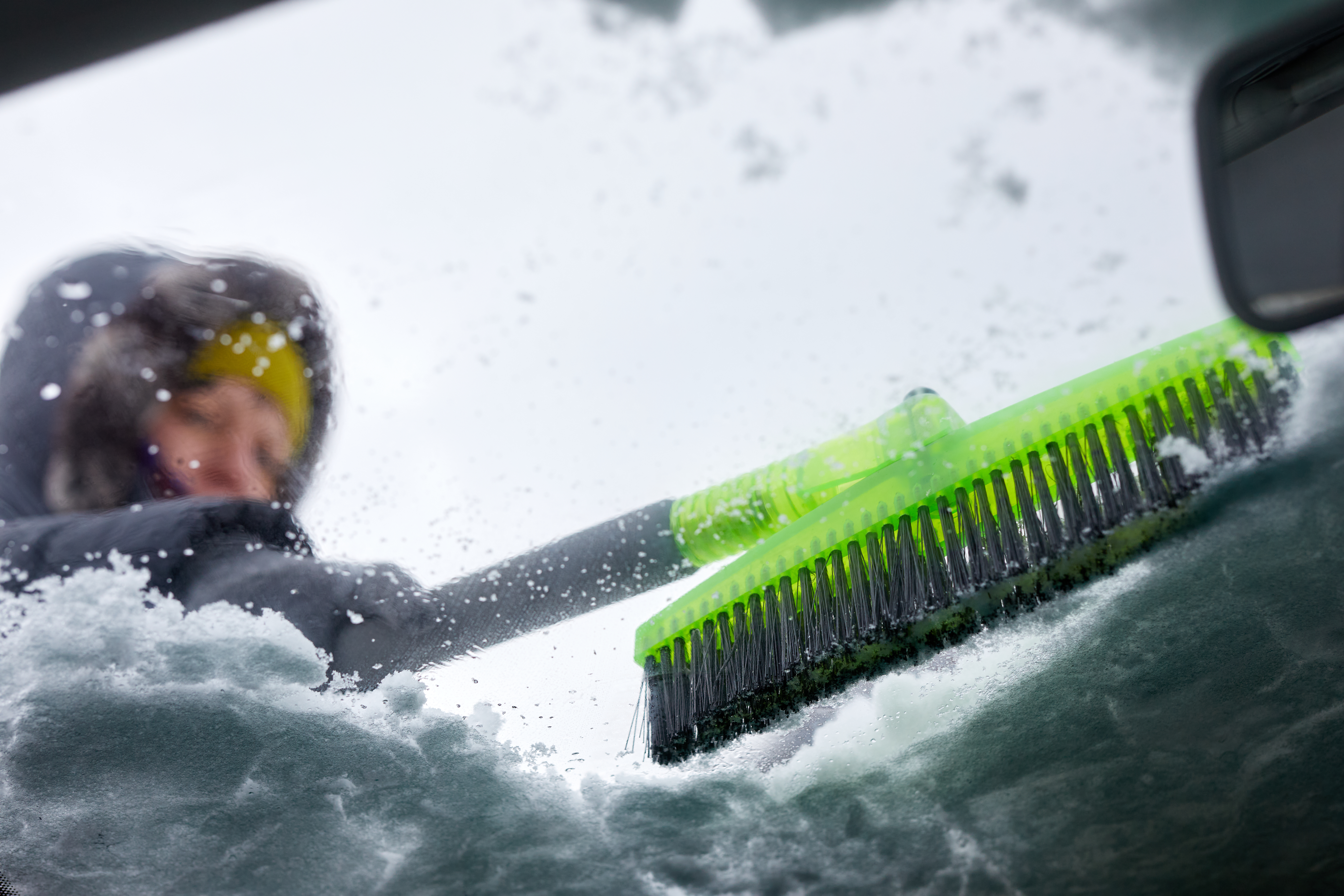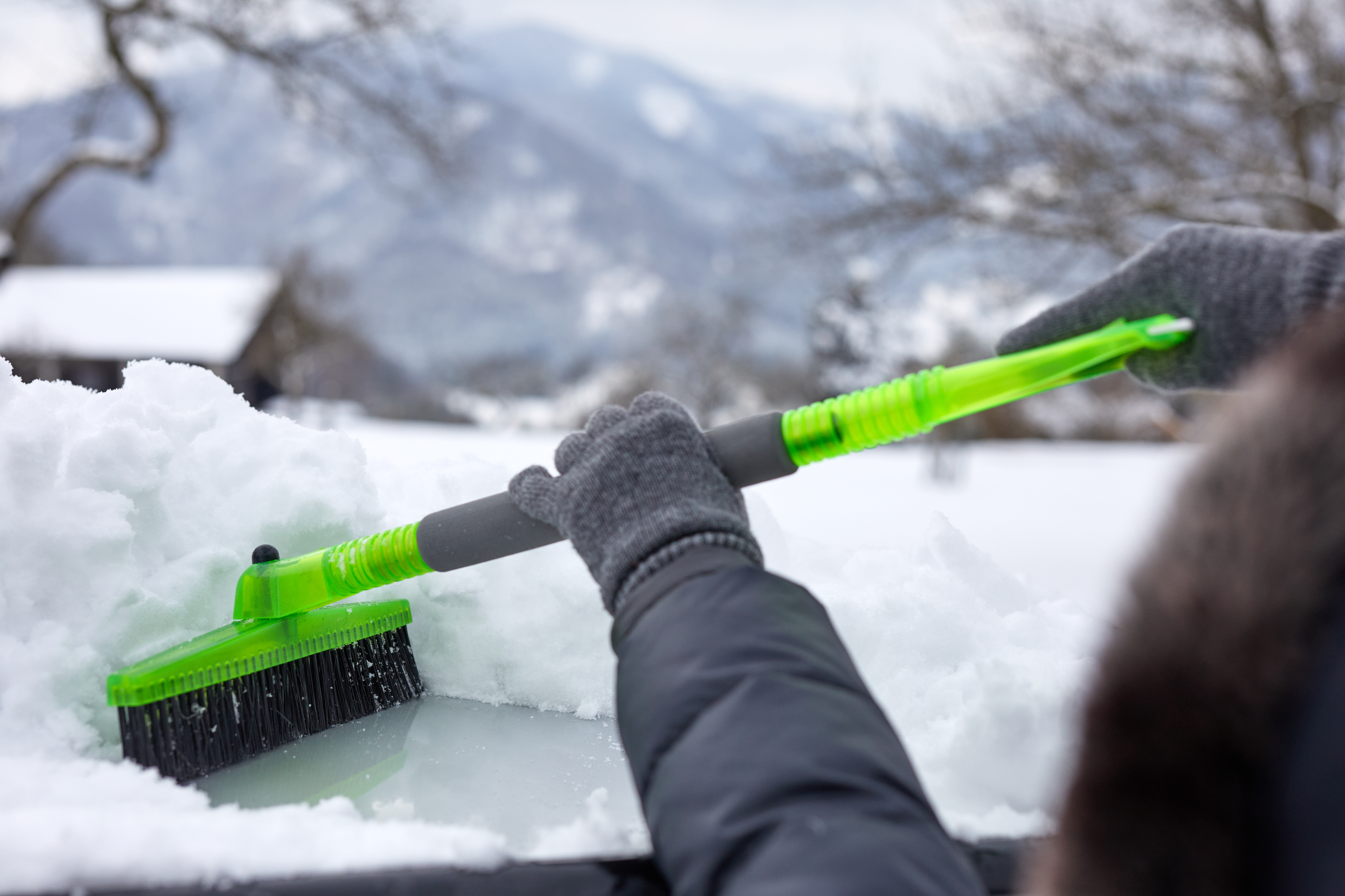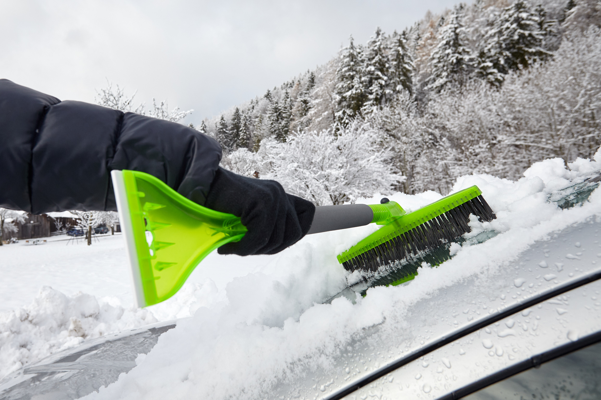 Schneebesen mit Eiskratzer und Teleskoprohr + Softgriff + schwenkbarer Bürstenkpf