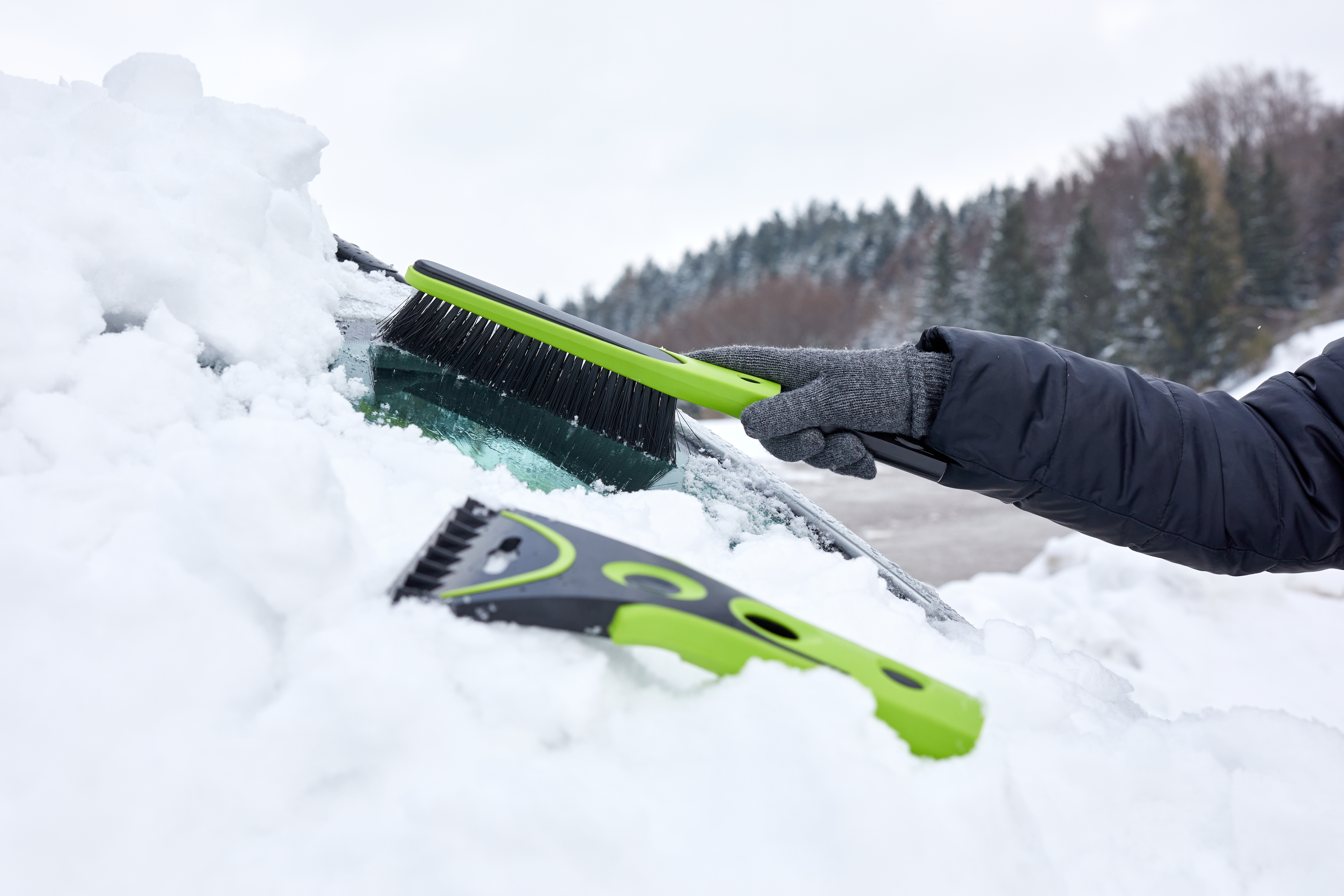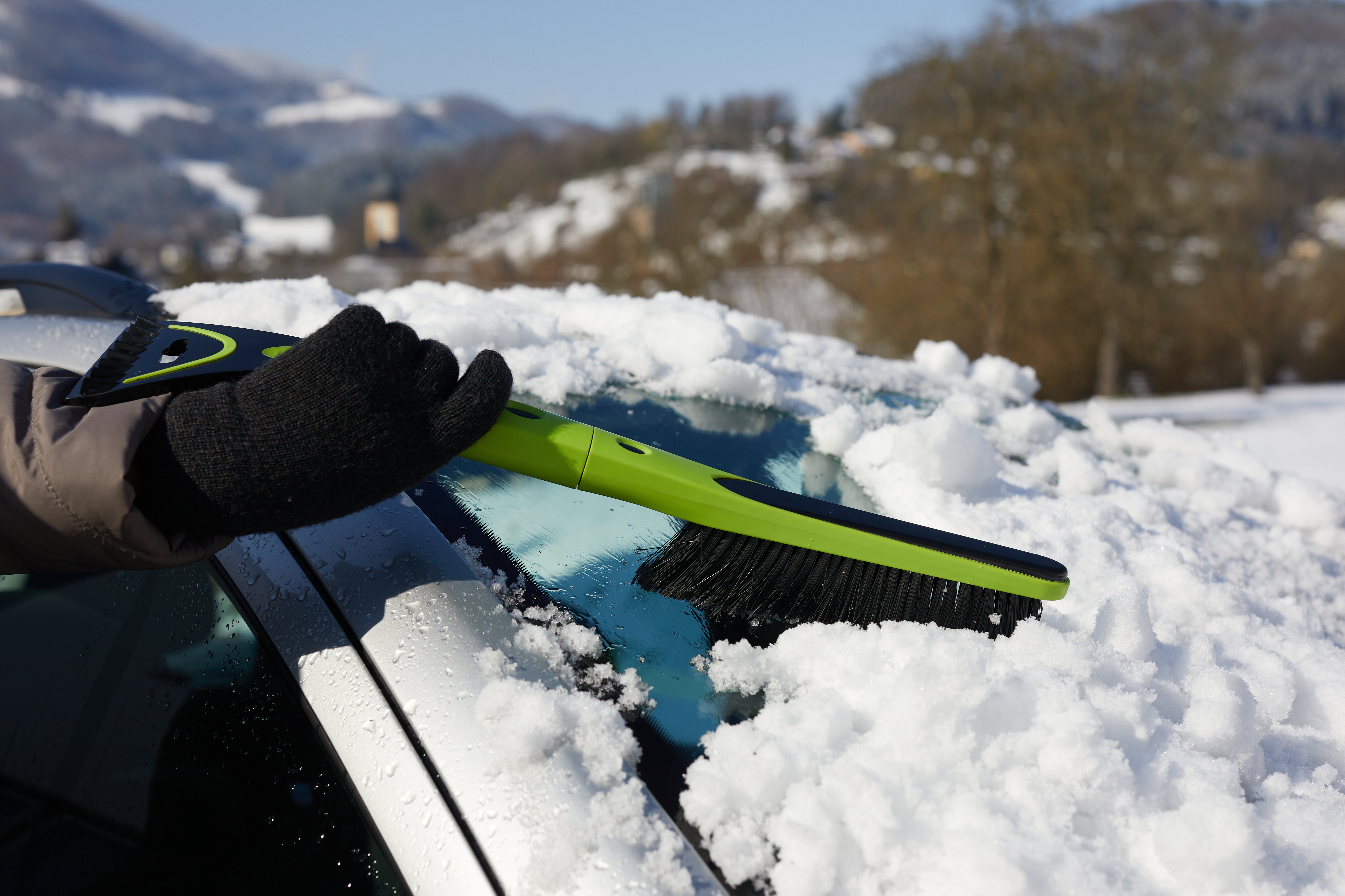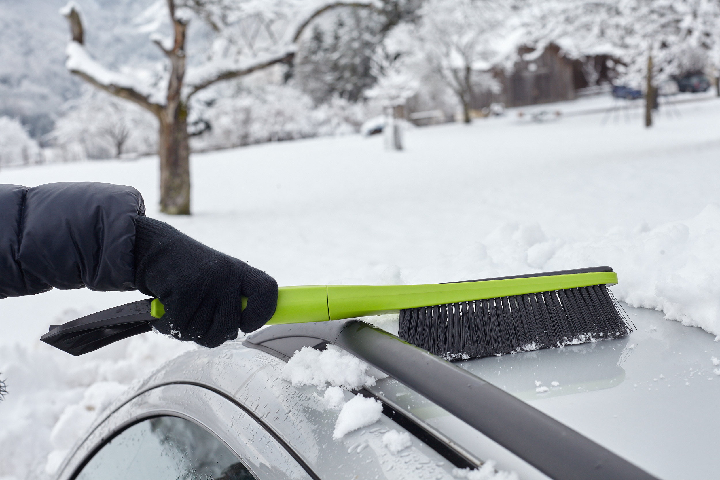 Kombination aus Eiskratzer und Schneebesen aus ABS Material und Gummi für besseren Schutz und angegenehmes Handling.